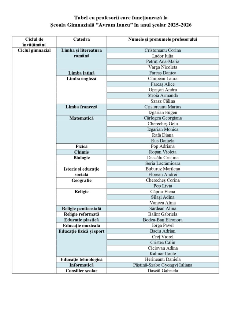 Structura formațiunilor de studiu în anul școlar 2025-2026